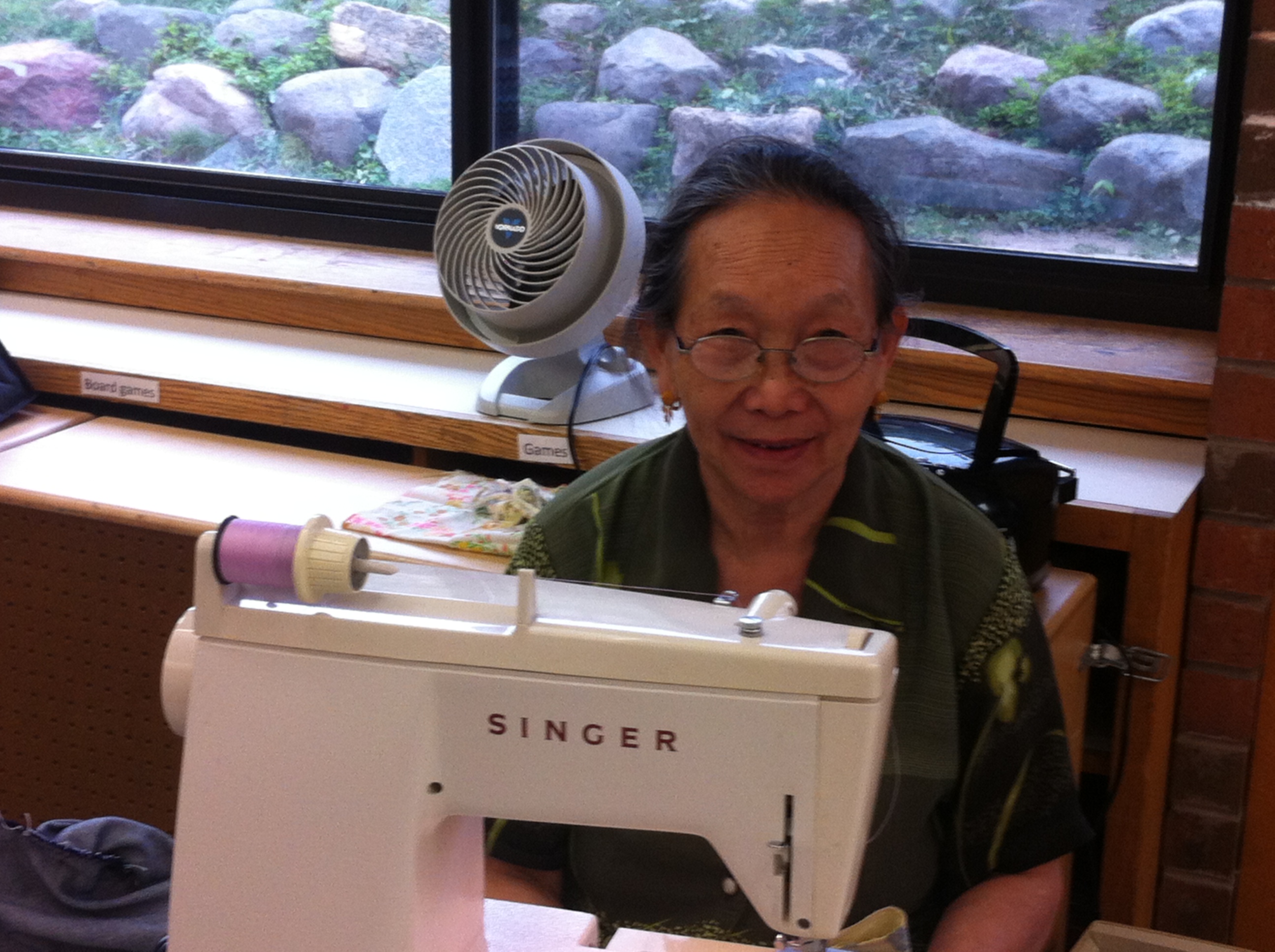 The classes meet in the evening because the women, all elders, spend their days at Kasjiab House, a very special place and program developed for Hmong elders to feel safe, receive counseling, learn more about American culture, and celebrate and express their own culture. Despite the fact that the elder women had been busy all day they had plenty of energy to sew in the evening. Their cultural background includes plenty of intricate handwork and they are excited to learn to use a sewing machine and, at the end of the class series, take home a machine of their own.