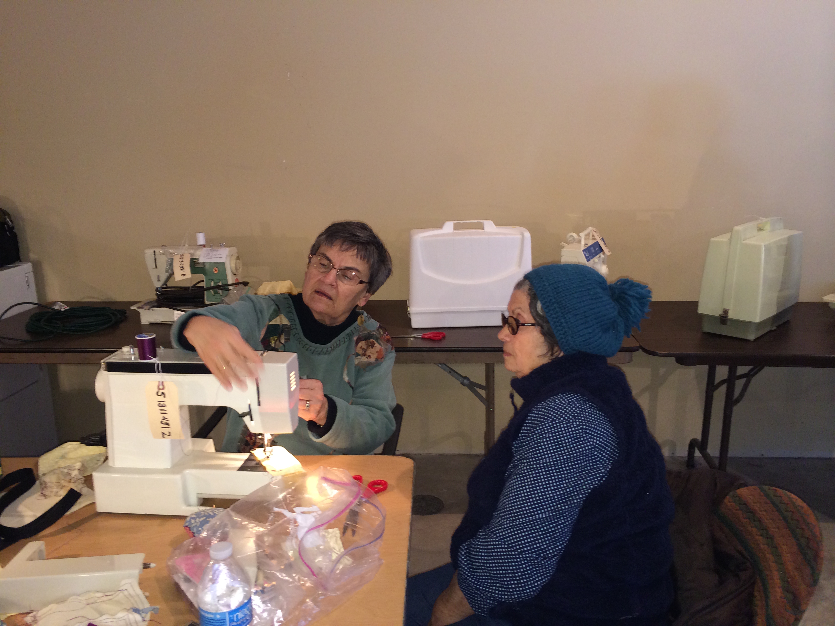 As I was preparing to leave for the church this morning my daughter, Maddie, offered to help us out too. So off we went, meeting Bird and Jane at the church. We gathered machines, even taking time to marvel at the “Genie” machine….a groovy older model we all fell in love with. Jane and Bird’s cheery smiles and warm voices were so soothing. After the church, Maddie and I headed over to the CMC to get set up.