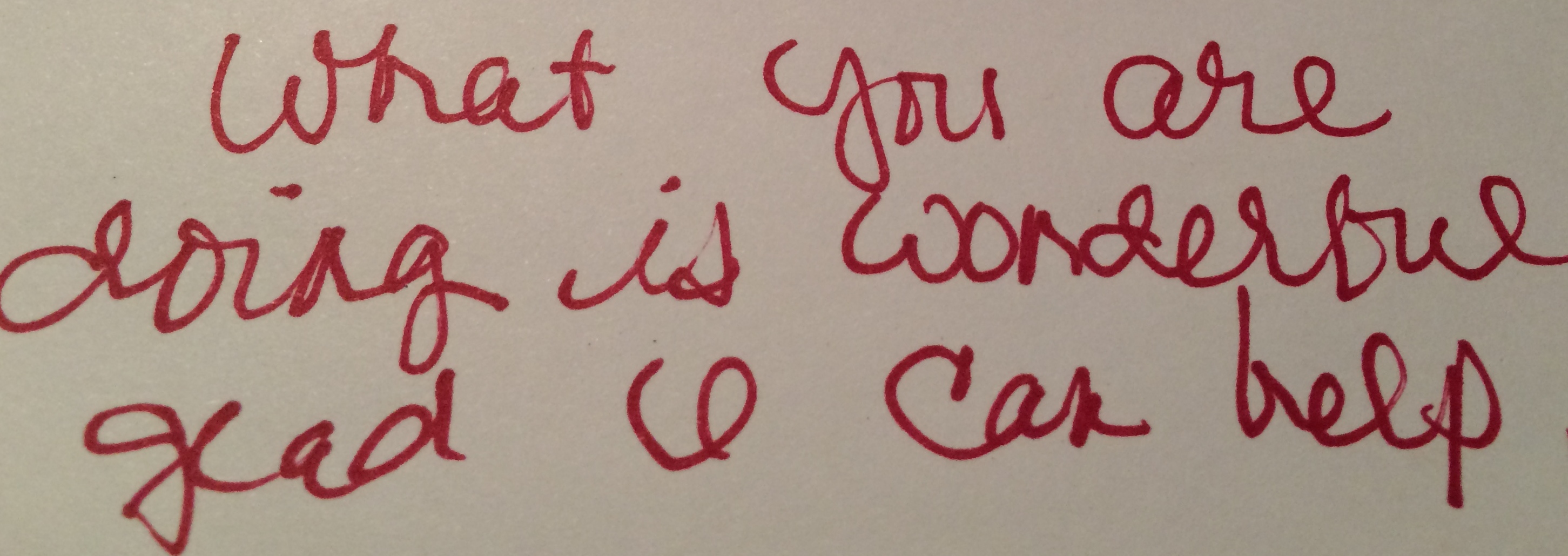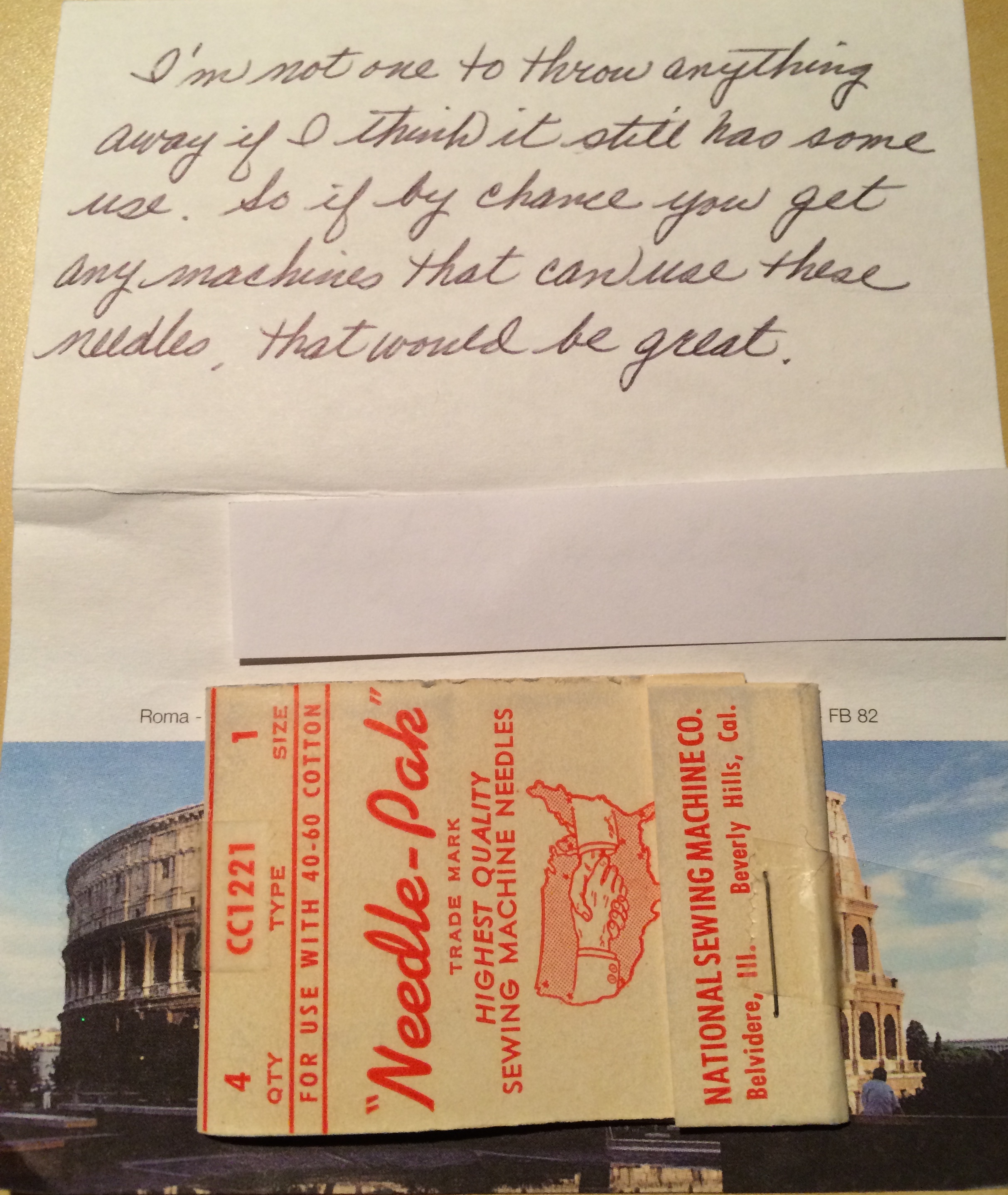 I could write a post called “Gratitude” every single day and it wouldn’t be enough. Every single day there are gifts of grace. It might be a note that arrives with a machine, sharing a story or lending support. It may be a donation from someone I’ve never met–someone to whom The Sewing Machine Project’s mission speaks loud and clear. It happens when I read a note from someone needing machines, someone who sees hope and possibility in a sewing machine. It might be as simple as stumbling across an old note or an old post, offering a glimpse of what we were and reminding me that we don’t know yet what’s to come.