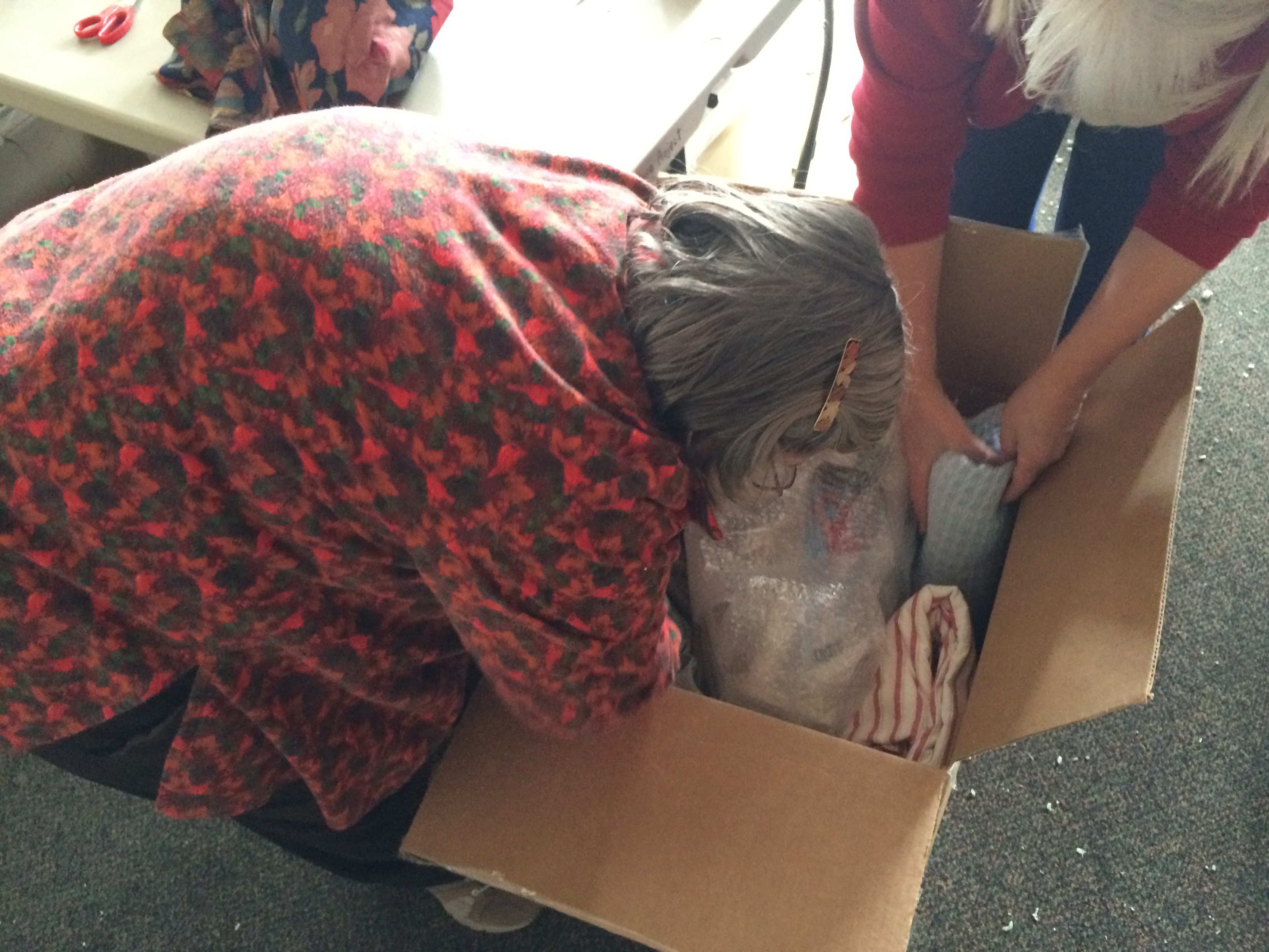 But it’s still really expensive. Shipping alone runs around $30 a machine and beyond the cost of the shipping itself there is the cost of supplies and the human cost of volunteers who help pack each machine and haul them down the steep steps at the church to load them in our cars. Did I mention that these ladies are pretty much all over 50 years old? We’re strong but still…it’s a lot of work.