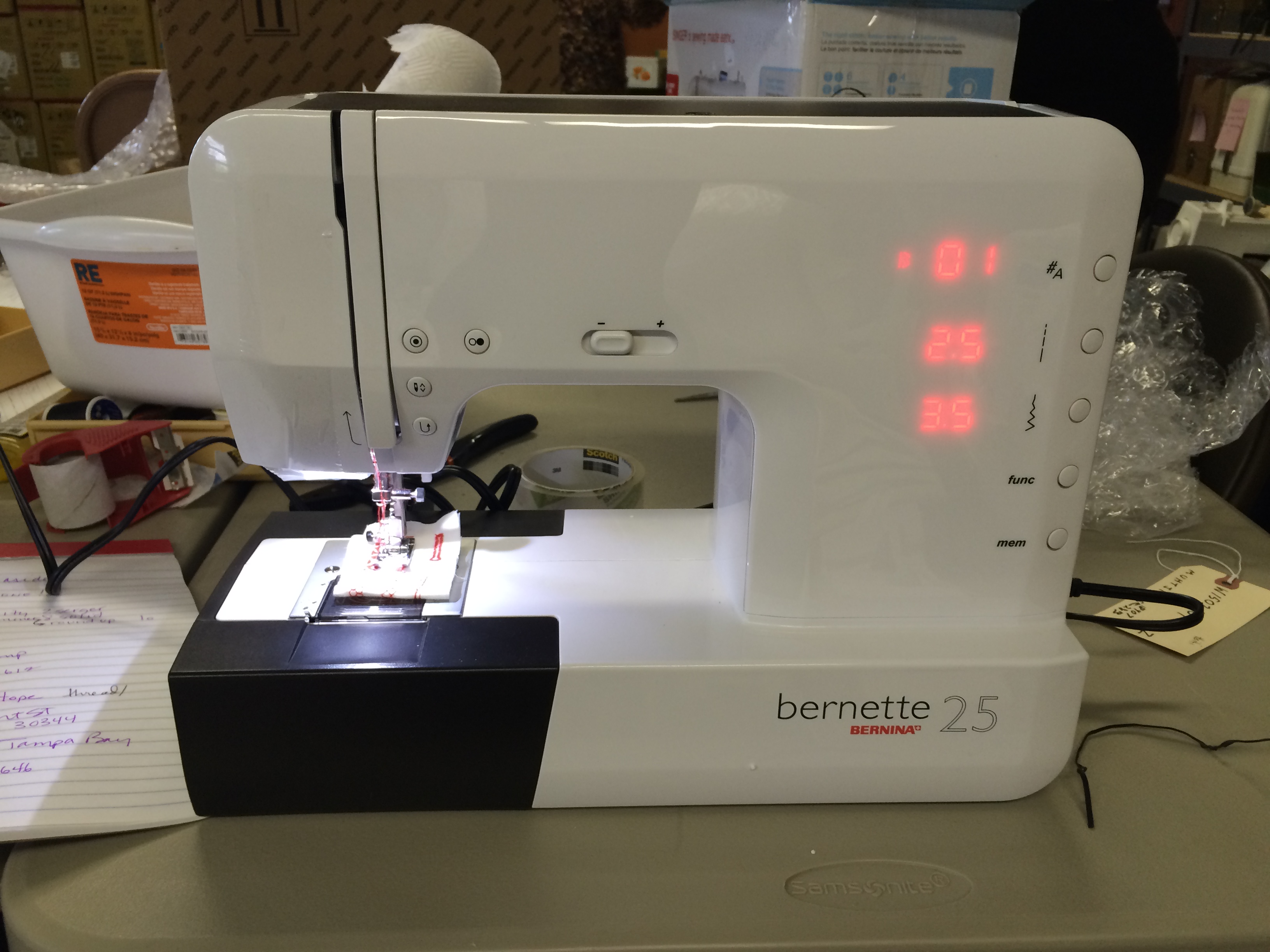 And most recently, we received a surprise gift of 10 Bernette machines from Bernina of America. These machines just left yesterday, traveling to a camp in the Eastern US where girls will learn to sew as part of a summer program–girls who usually wouldn’t have this opportunity, girls whose camp fees are paid by scholarship.