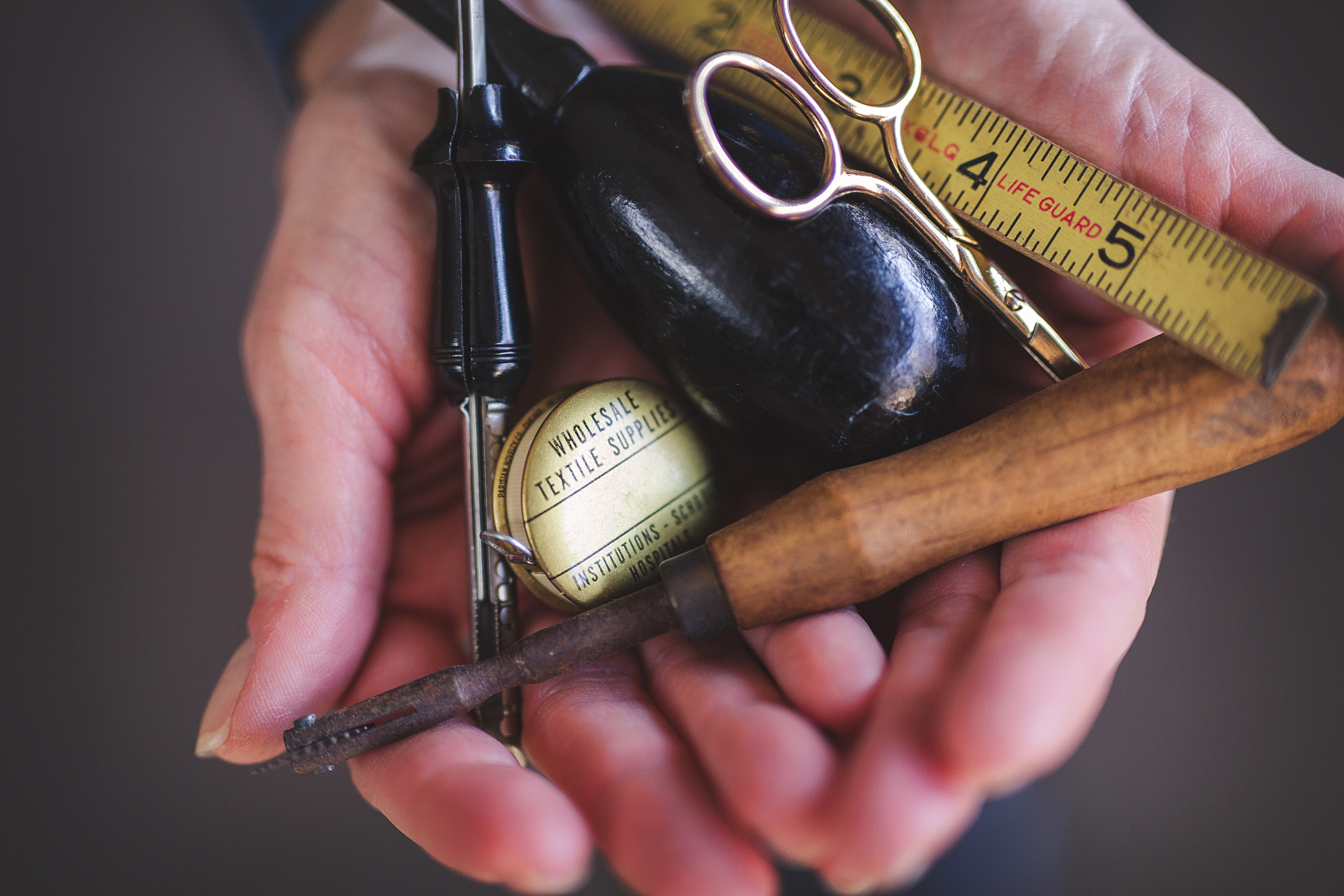 It was all so familiar. My mother has a similar collection and so did my grandma. From a generation of “waste not, want not”, every piece was valued and carefully saved. And these pieces bring on the most intimate of memories as we imagine the women before us carefully handling them. A woman’s sewing basket is an intimate thing–no one knows its contents like she does. I think of my own mother, my own grandmother saying “oh, I think I have something that will work” and you know that she can envision some little treasure, buried in her sewing basket, that will make your garment like new again.