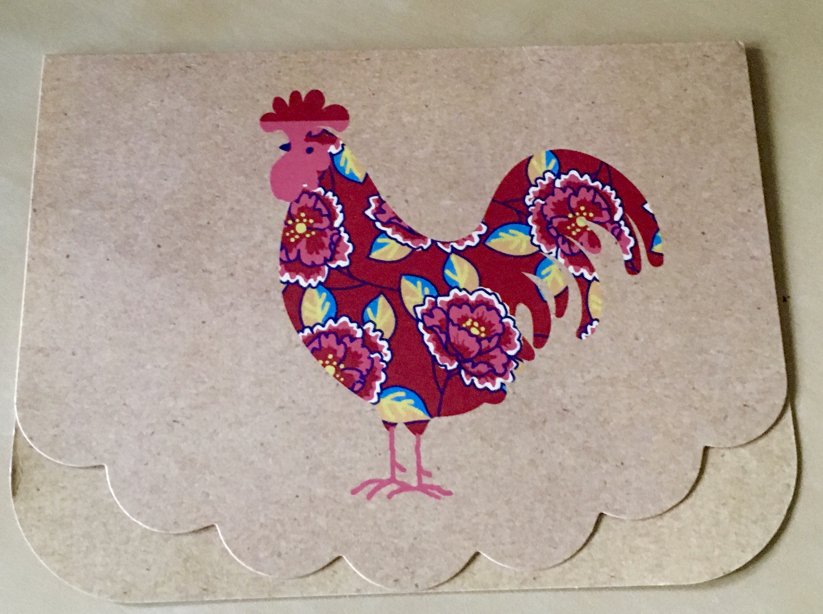 A sweet floral rooster graced the front of the tidy notecard and inside was this note: