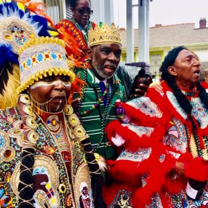 When I walked through the double shotgun house that is becoming the Center for the New Orleans Mardi Gras Indian Council I couldn’t help but become excited. The project, spearheaded by Chief Howard of the Creole Wild West, aims to create a collaborative space for the Mardi Gras Indian community. Featuring meeting and educational space, the Center will be a valuable resource. I was especially excited when Queen Rukiya Brown showed me the room that will be the sewing education space.
